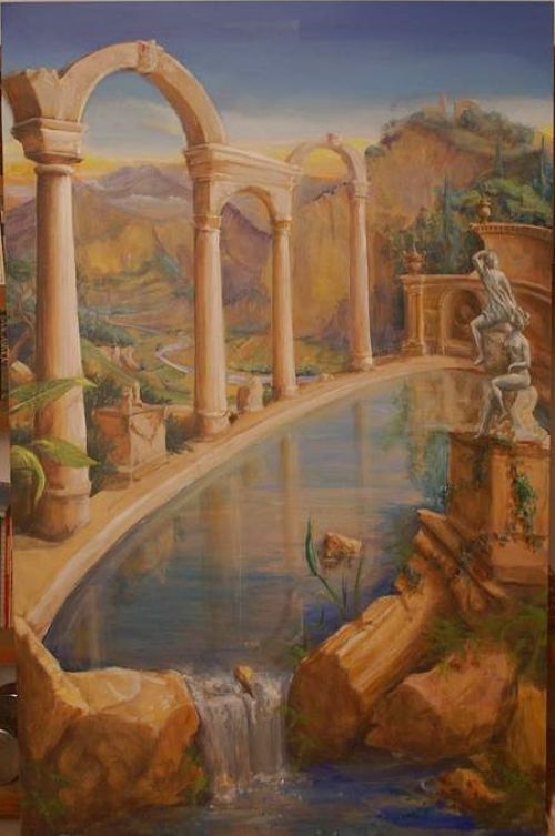 Arcadisch landschap in klassieke stijl met prachtige dieptewerking