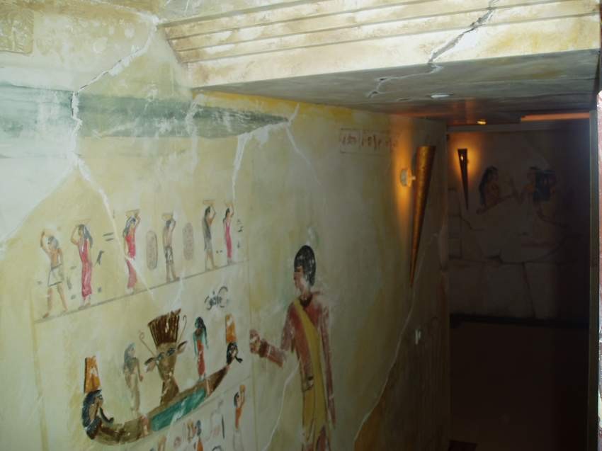 Terug naar overzichtDiverse Egyptische muurschilderingen op verschillende locaties afgewerkt met 3D effecten en Egyptische ornamenten uit eigen gieterij.