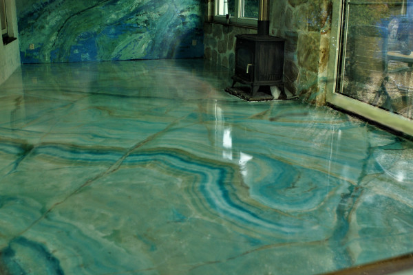 Gemarmerde epoxyvloer die s'nachts in een lichtgevende zee verandert.....